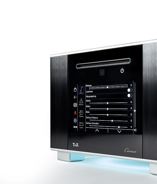Der Caruso R denkt die Idee des Caruso konsequent weiter und ist doch angenehm vertraut. Das T+A Aluminium Framework ermöglicht seine Präzision und Stabilität, seine Außenmaße zitieren den ersten Caruso von 2008. Das neue 7 Zoll HD Display streckt den Caruso R und lässt ihn auch ohne Lautsprecher dezent elegant im Raum stehen.