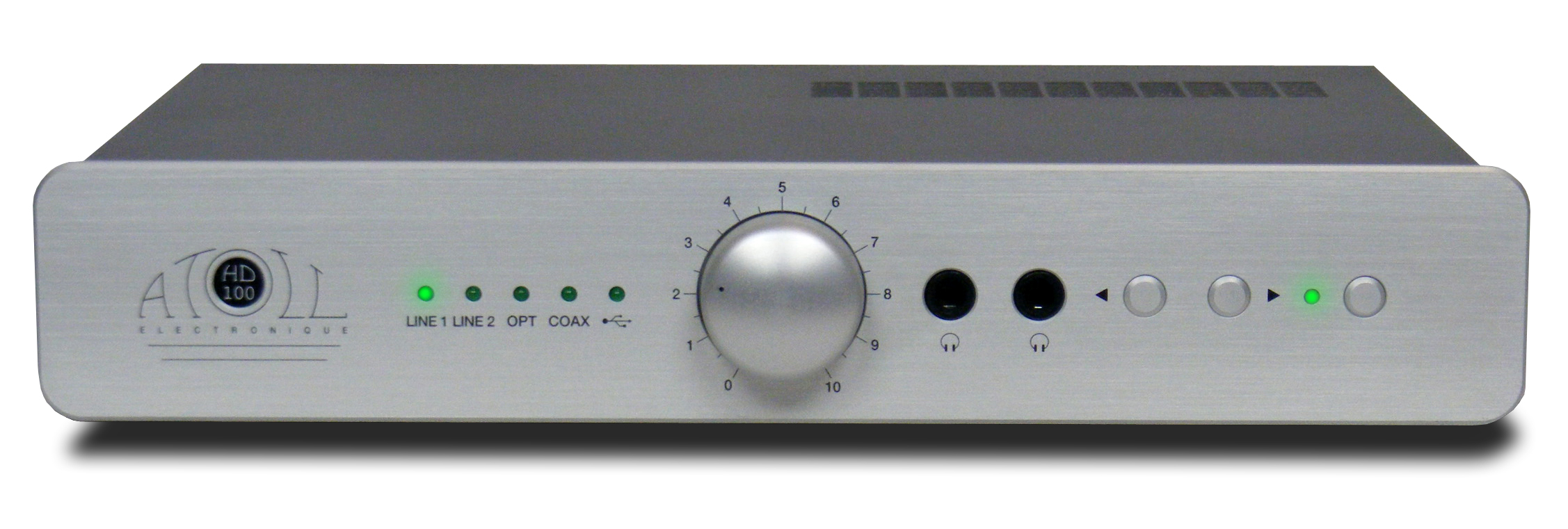 Mit dem HD 100 Kopfhörervorverstärker füllt Atoll noch eine der wenigen Lücken in seinem Produktportfolio. Der HD 100 ist eine Class-A Kopfhörerverstärker, Vorstufe und DA-Wandler in Einem. 5 Eingänge - davon 2x analog und 3x digital (Coax, Toslink und USB) erlauben Verbindungen zu unterschiedlichsten Zuspielgeräten, 2 Klinkenstecker mit 6.35mm und ein Line-Out geben die Signale an mehrere Verbraucher weiter.