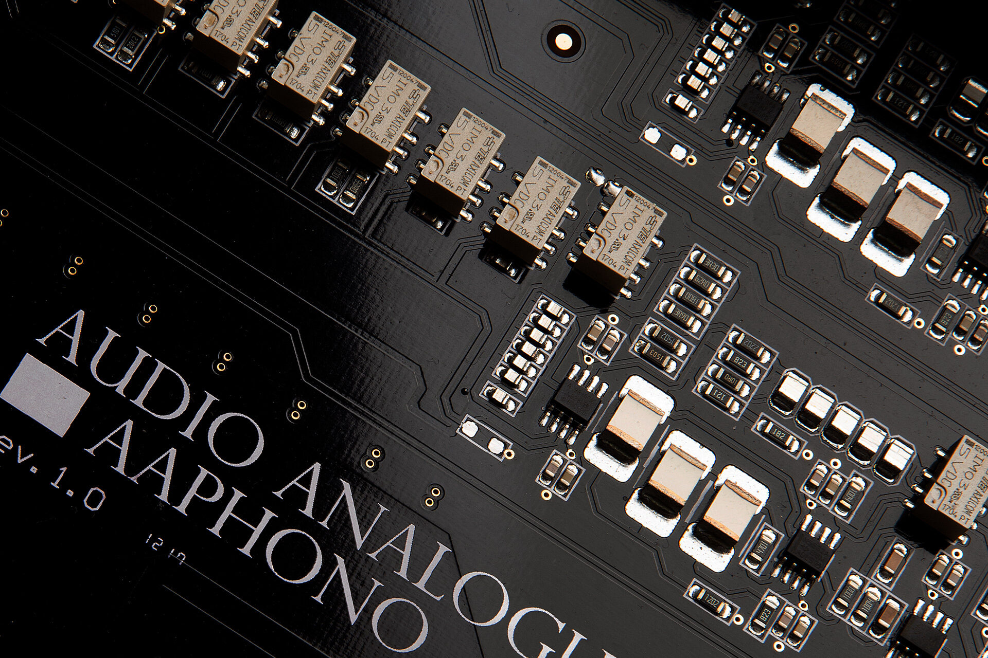 AAphono wurde ab einer Zwei-Stufen-Konfiguration entwickelt, die es ermöglicht, die gesamte Verstärkung auf beide Verstärker zu verteilen, um eine präzisere Antwort auf die RIAA zu erhalten. Man hat sich sehr bemüht, um in diesem Parameter ein gutes Ergebnis zu erzielen, indem hochwertige und gleichzeitig wenig tolerante Komponenten verwendet wurden, die parallel konfiguriert sind, um die Fehler gleichzumachen.