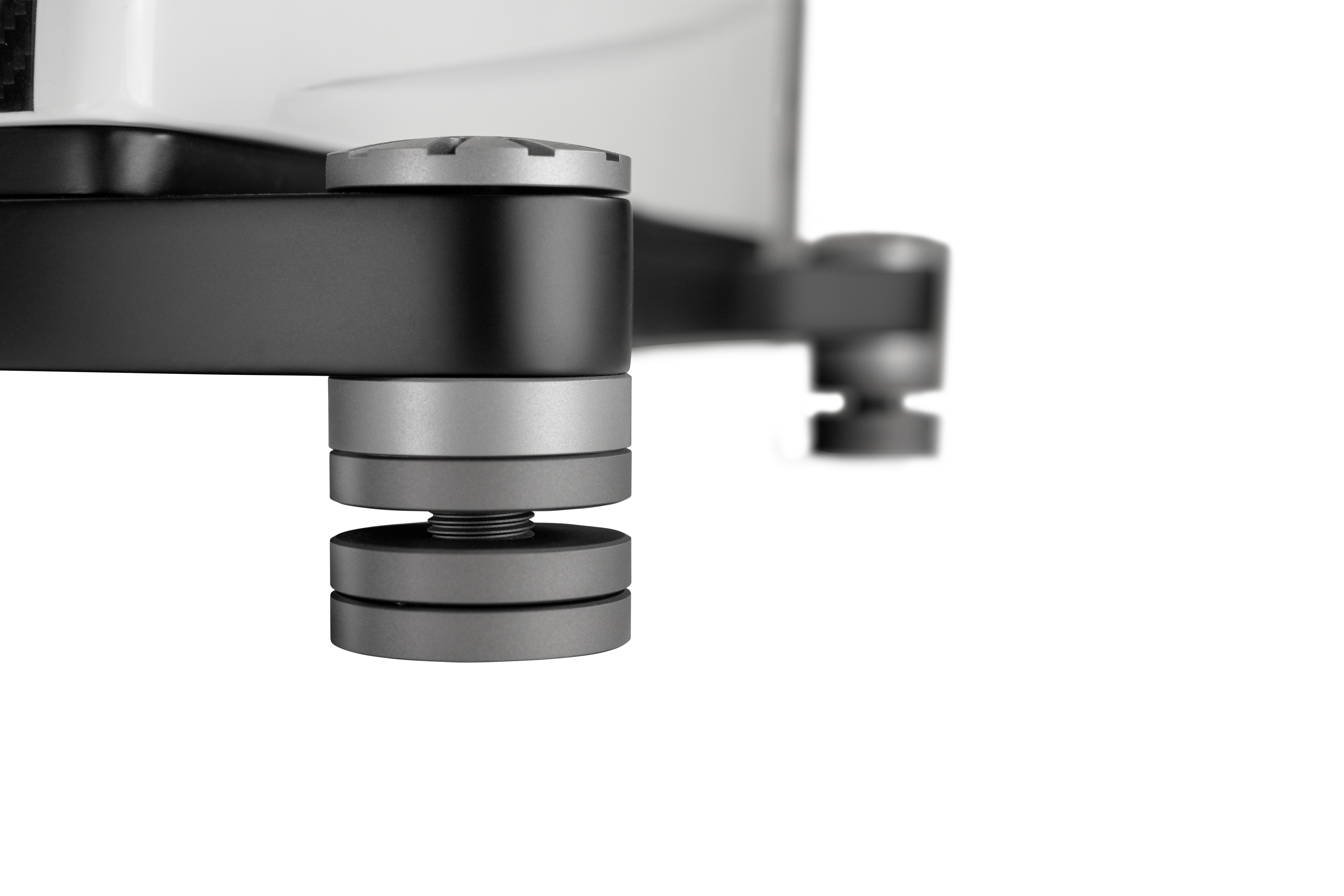 Besteht aus drei Scheiben und Kugellagern, die die Vibrationen auf winzige Kontaktpunkte konzentrieren. Dadurch können unerwünschte Resonanzen entweichen und in Wärme umgewandelt werden – für eine effektive mechanische Erdung. Entwickelt mit einem doppelten Ziel: optisch mit jeder Komponente zu verschmelzen, unter der sie arbeiten, und diese zu unterstützen, damit ihr wahres Potenzial freigesetzt werden kann.