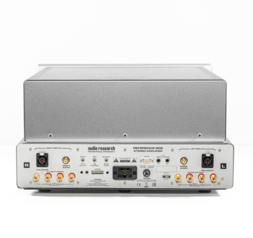 Äußerlich hat der 80S die gleichen Abmessungen wie der 160M. Ein einzelner flacher Flüsterlüfter ist in die Bodenplatte eingebaut. Auch die Flexibilität ist mit XLR- und SE-Eingängen, 4-8-16-Ohm-Ausgangsabgriffen, 12-V-Eingangs- und Ausgangstriggern, RS232-Eingang, Röhrenstundenzähler, schaltbaren Lüftergeschwindigkeiten und deaktivierbarer Auto-Off-Funktion integriert.