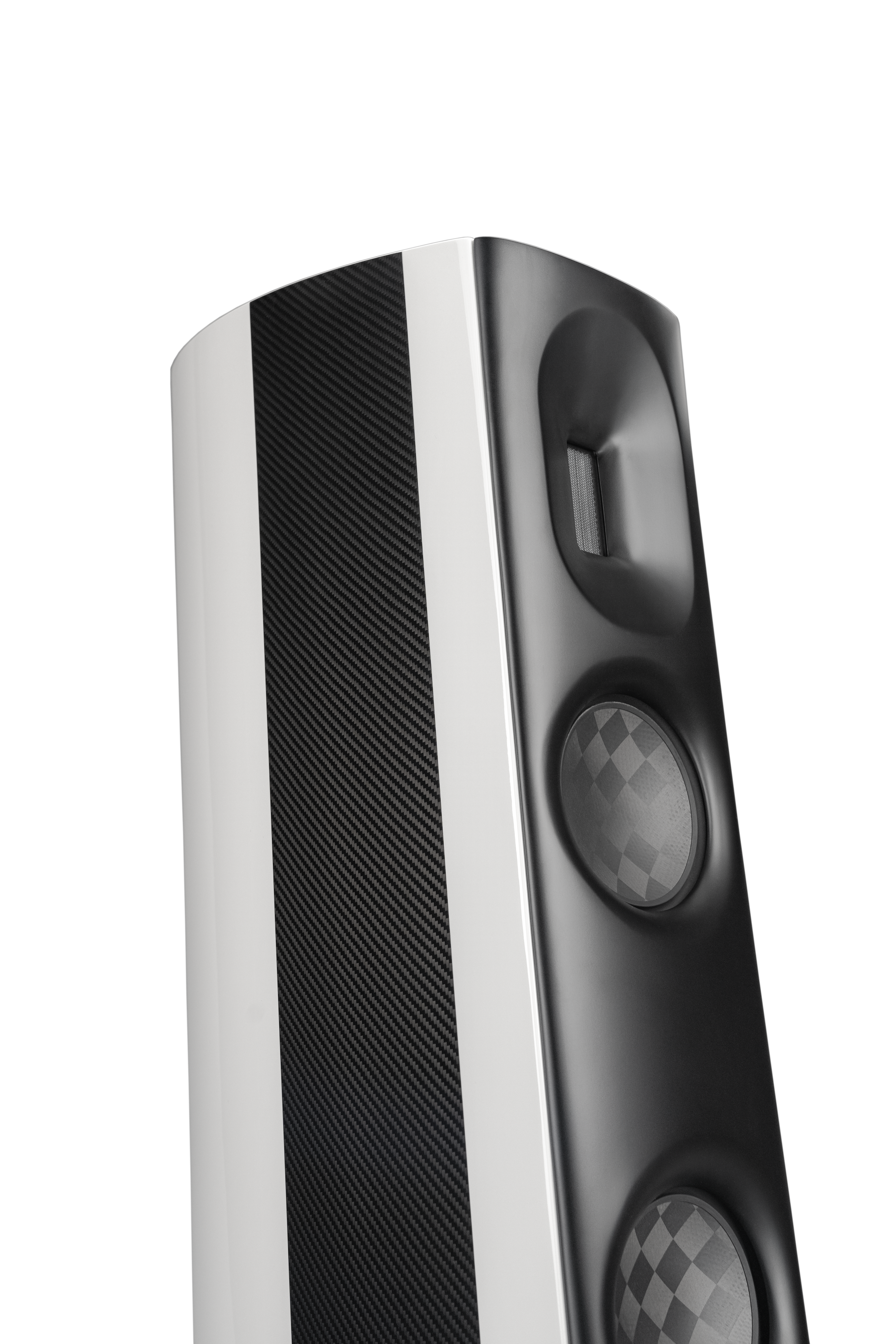 Schwarzer oder weißer Hochglanzlack und veredelt mit optischen Kohlefasereinsätzen