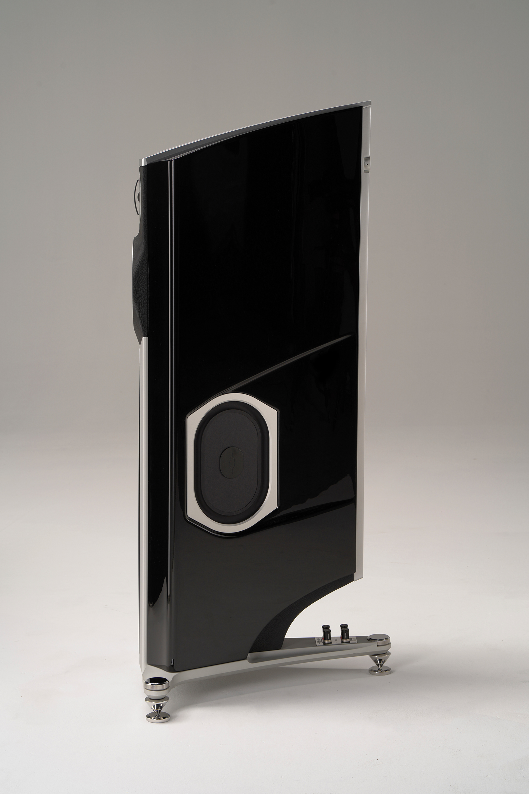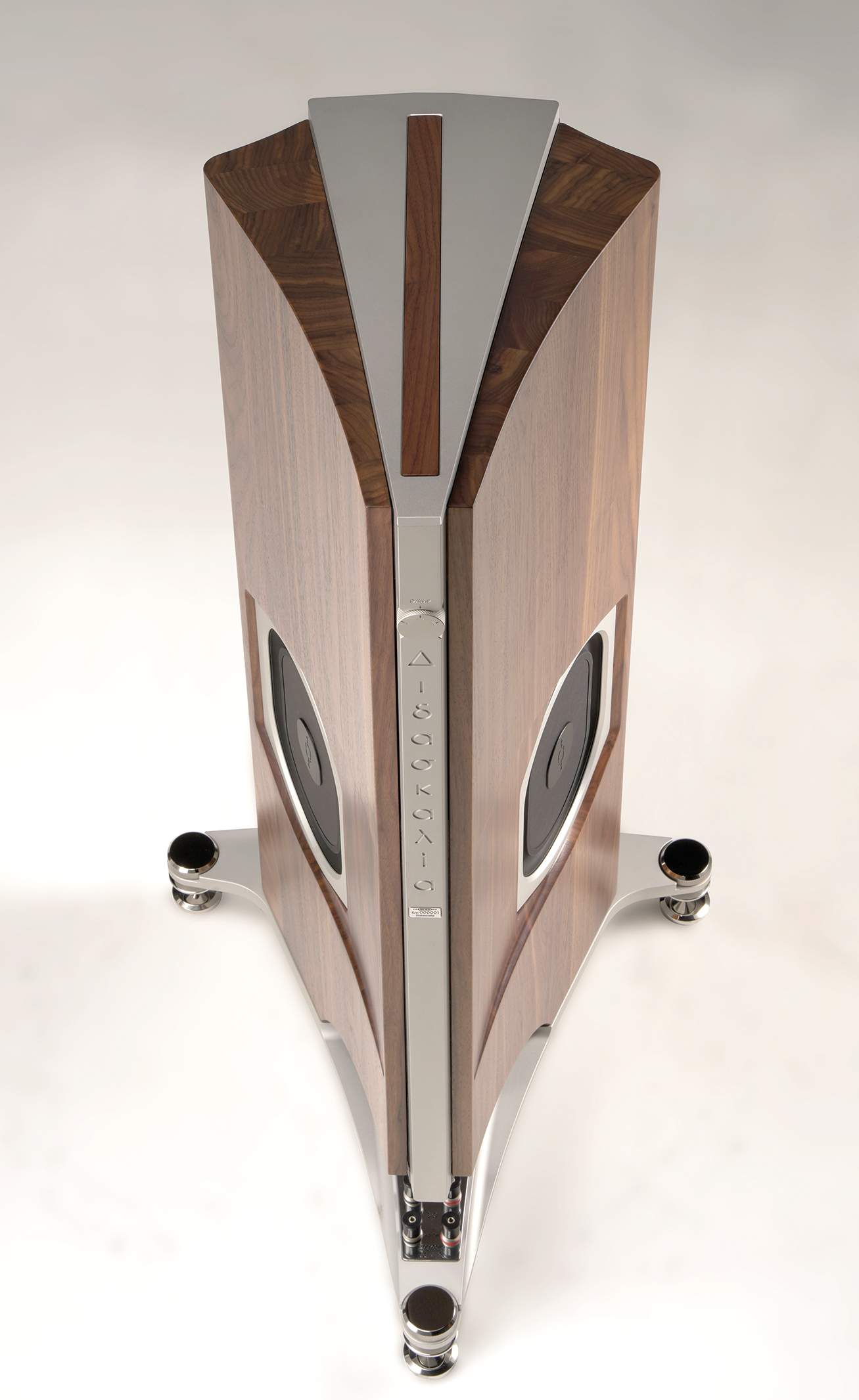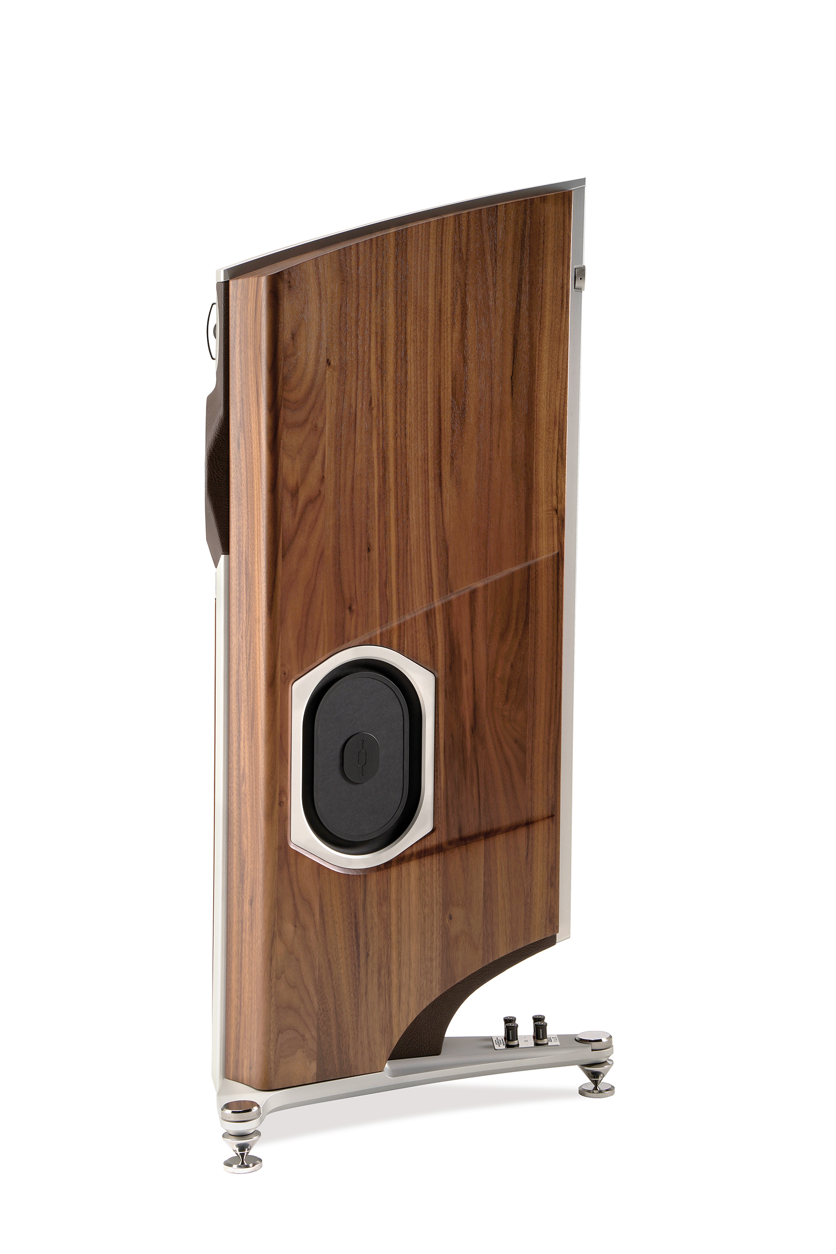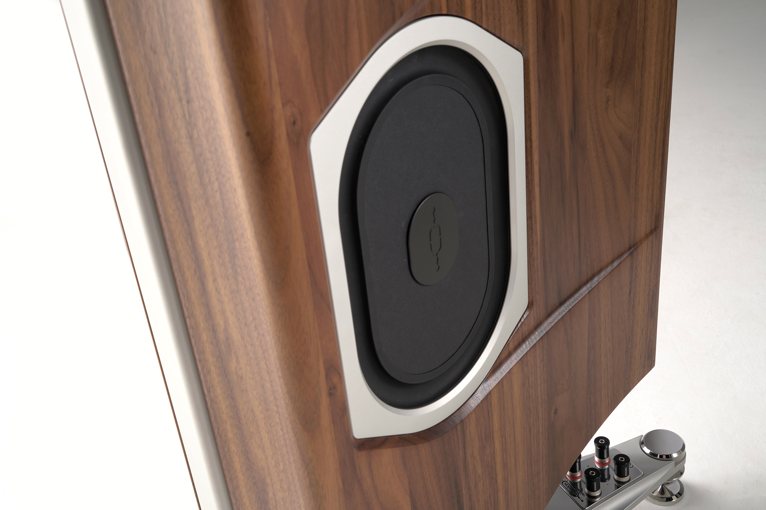Die seitlichen, 220 x 260 mm großen, „aktiven“ Drohnenlautsprecher in Rennstreckenform – die passiven Radiatoren – ermöglichen ein weiteres spezifisches Designziel von Didascalìa: die Steigerung der Klangreinheit einer Zwei-Wege-Konfiguration und die Überwindung ihrer größten Einschränkung, des fehlenden Tieftonbereichs. Diese Lautsprecher teilen sich das großzügig dimensionierte Gehäuse mit dem nach vorn gerichteten Mitteltöner, der sie mit Druck versorgt.