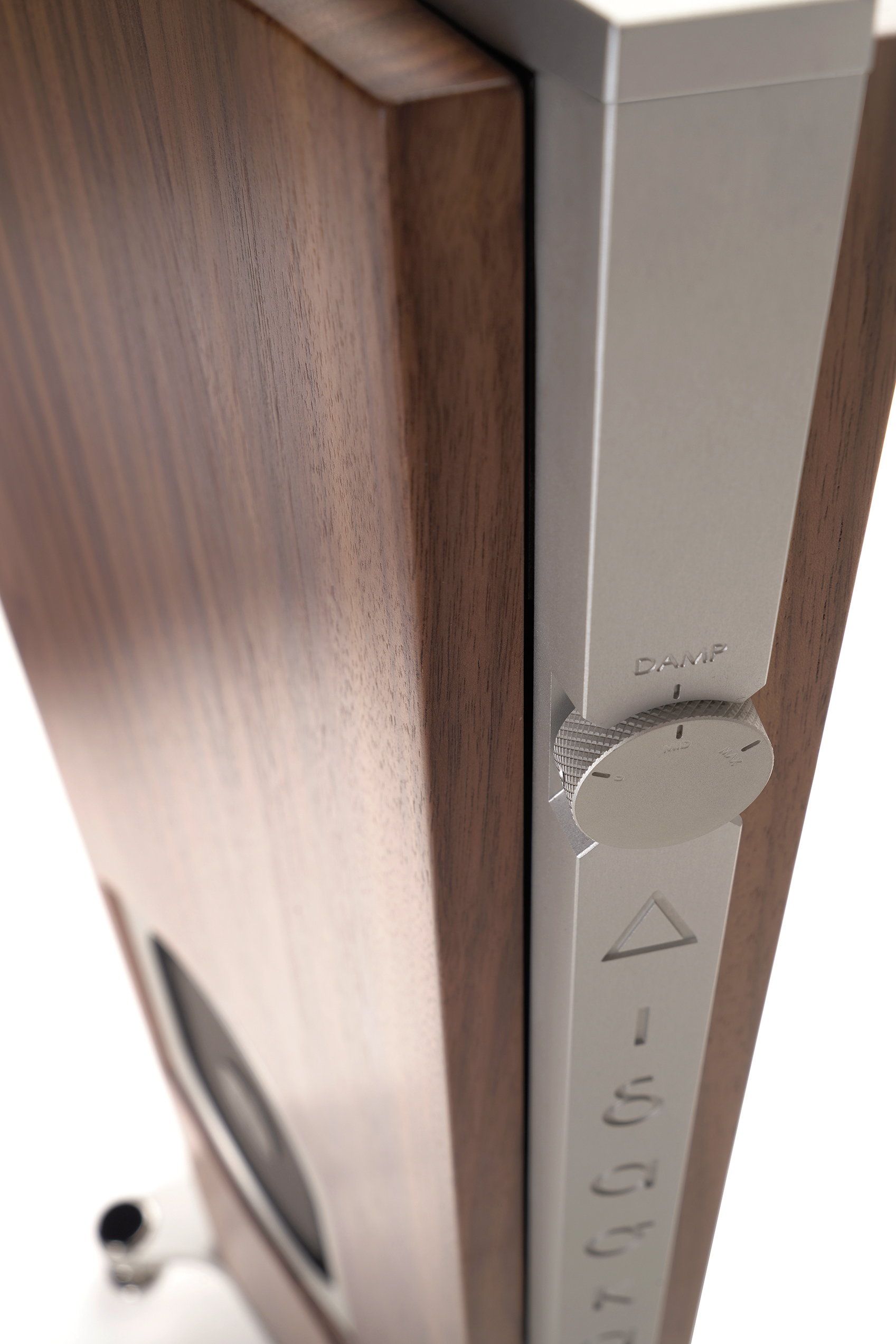 So lässt sich über den Schalter auf der Rückseite von Didascalìa zwischen drei verschiedenen Dämpfungsgraden der Drohnenmembranen wählen. Dadurch ergeben sich unterschiedliche Verhaltensweisen im Tieftonbereich für eine optimale Anpassung an jede Hörumgebung. Entworfen von Diapason , hergestellt von Scan Speak.