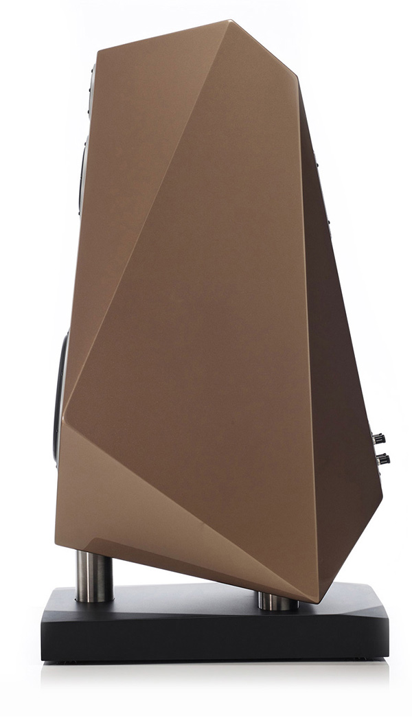 Innovative Designlösungen wie die funktionale Polygonform, eine Weiterentwicklung des Standlautsprechers Astera, von dessen facettenreicher Gehäuseform die Inspiration stammt. Die 14 Seiten sind so berechnet, dass der Lautsprecher wie ein akustisches Instrument abgestimmt ist. Sie sind so angeordnet, dass nur zwei Seiten parallel zueinander verlaufen, um interne Resonanzen zu minimieren.