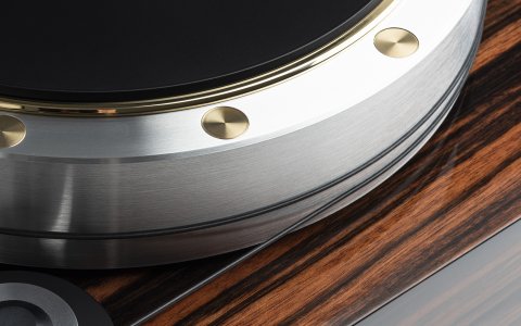 Der Plattenteller wurde mit 12 Messingeinsätzen und einem oberen Messingeinsatz unter der oberen Vinylplatte aufgerüstet, die zusätzliches Gewicht hinzufügen und den Plattenteller für eine noch bessere Geschwindigkeitsstabilität weiter stabilisieren. Er besteht aus zwei Teilen. Der erste Teil besteht aus einer weichen Legierung, der zweite Teil aus einer härteren. Dies reduziert den Energiefluss. Im ersten Teil sind auch die Neodym-Magnete eingebaut. Der Plattenteller wiegt mehr als 22 kg. Der Durchmesser des Plattentellers beträgt 400 mm (nicht die üblichen 300 mm). Das bedeutet, dass Sie bei gleichem Gewicht mehr bewegte Masse auf dem Plattenteller erhalten. Der Plattenteller ist außerdem mit einer Sorbothan-Dämpfung ausgestattet, um ihn resonanzfrei zu