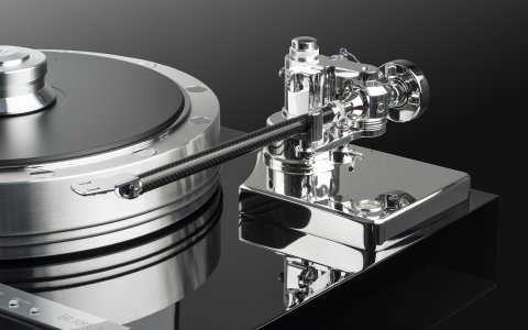 Das Lager ist nicht standardmäßig, sondern invertiert mit einer übergroßen polierten Welle. Der neue Plattenteller mit seiner großen Masse erzeugt mehr Energie, die besser absorbiert werden muss. Deshalb wurde ein neuer Lagerblock aus einer Chromlegierung entwickelt, der mehr Energie aufnehmen kann und das gesamte System besser dämpft. Darüber hinaus verfügt die Lagerspindel über eine neue "Movic"-Beschichtung mit dem geringstmöglichen Reibungskoeffizienten (6-mal weniger als bei früheren Spindelversionen). Dies ist die gleiche Beschichtung, die auch von der NASA für Lager in Satelliten verwendet wird. Auf der Oberseite wird eine Keramikkugel verwendet, da sie sehr hart und reaktionsträge ist. In Kombination mit einer Teflonplatte als Lagerspiegel ist dies ebenfalls eine gute Dämpfungsvorrichtung. Die präzise, satinierte Oberfläche aus Teflon sorgt für eine perfekt glatte Bewegung ohne jedes Rumpeln. Der Plattenteller hat eine magnetische Aufhängung mit Neodym-Magneten. Durch die Vergrößerung des Abstands vom Lager zum Tonabnehmer eliminieren die kleinen Neodym-Magnete magnetische Einflüsse auf den Tonabnehmer. Dank der Magnete kann eine große Masse bewegt werden, so dass auf das Lager praktisch kein Druck ausgeübt wird. Dadurch wird ein Rumpeln vermieden. (Ein masselastischer Plattenteller verursacht in der Regel ein hohes Maß an Rumpeln.) Der Druck des Lagers ist einstellbar. Es gibt verschiedene Philosophien über den Lagerdruck. Mit dem Forte-Plattenspieler können Sie ihn nach Ihren Vorlieben und Ihrem Geschmack einstellen.