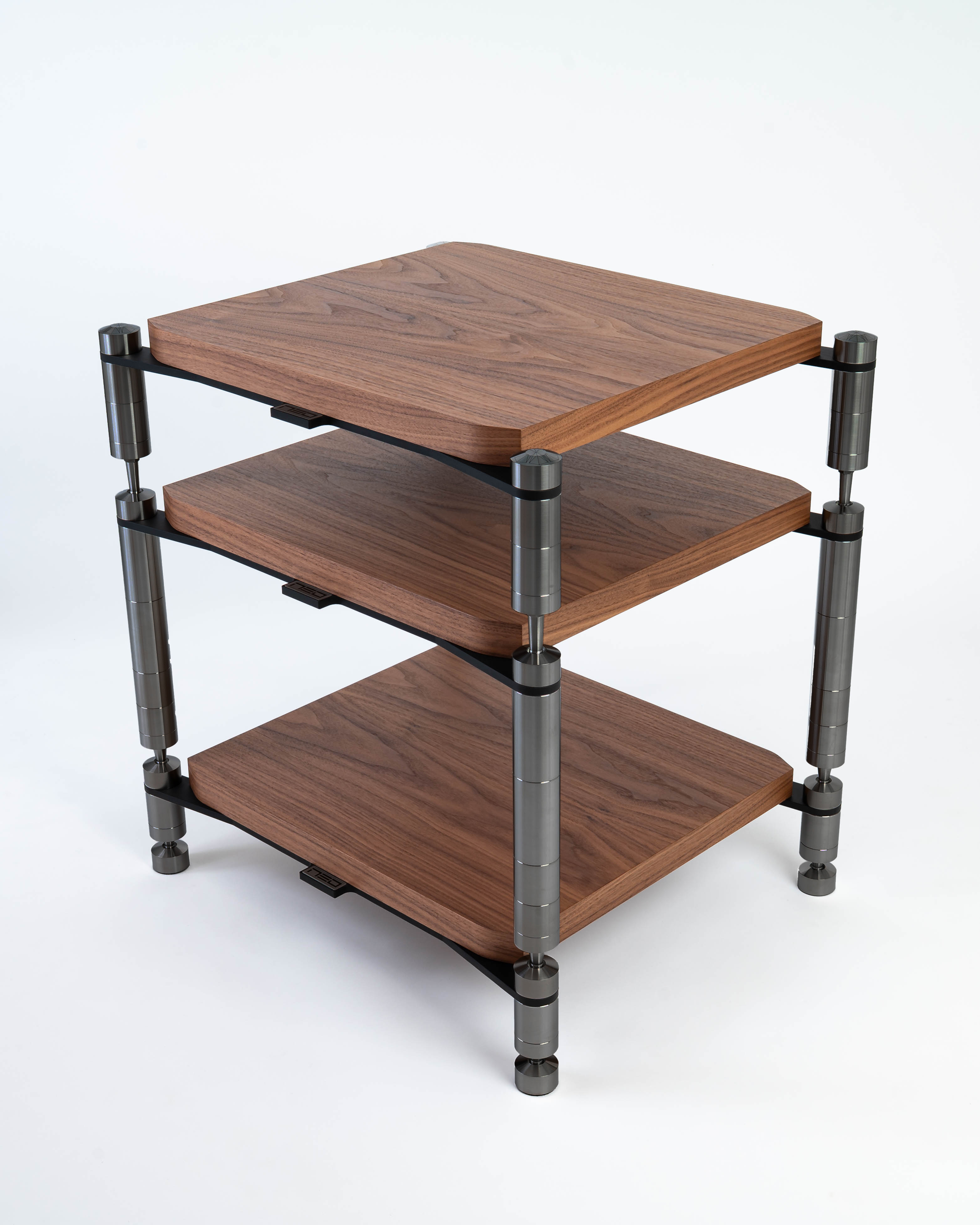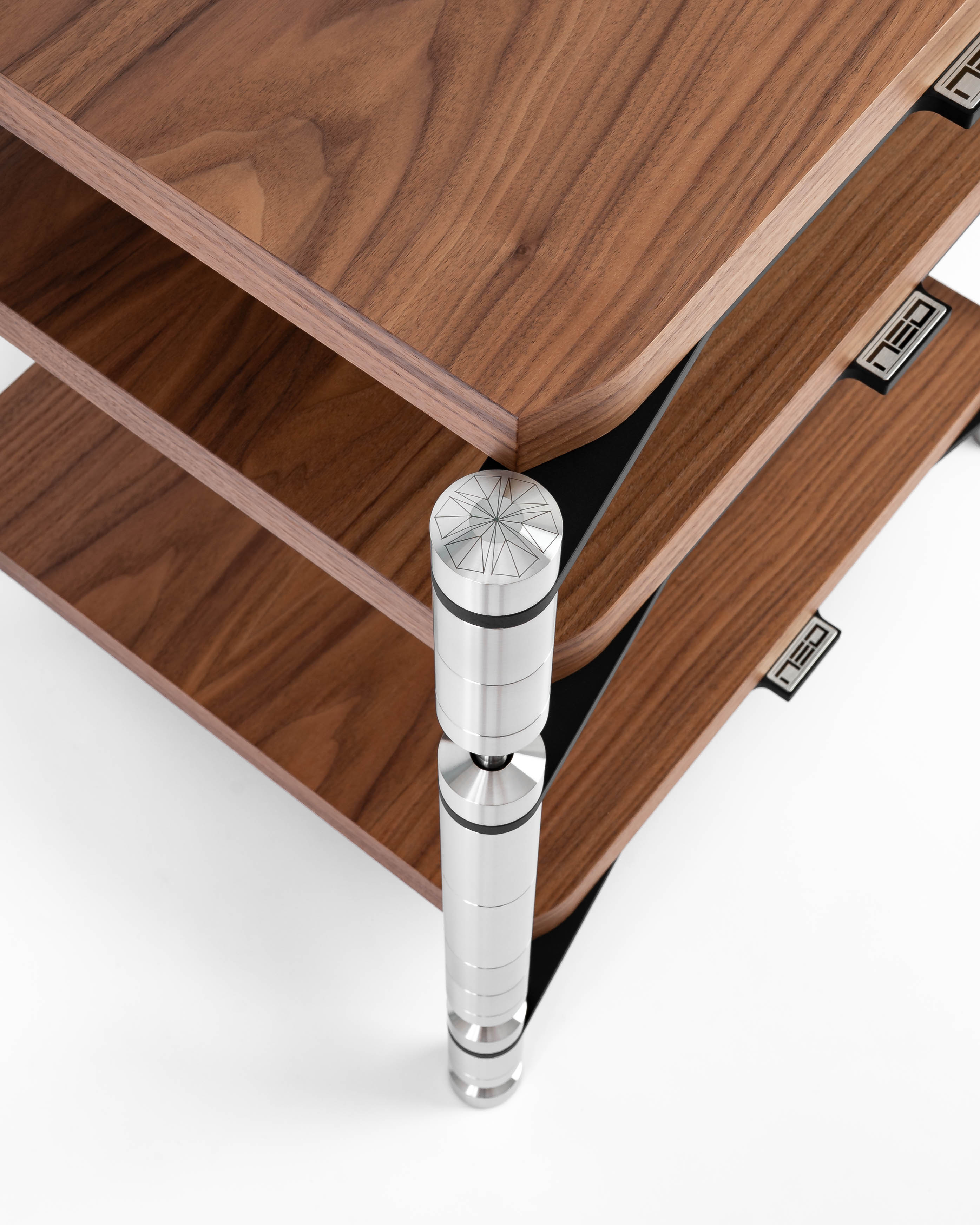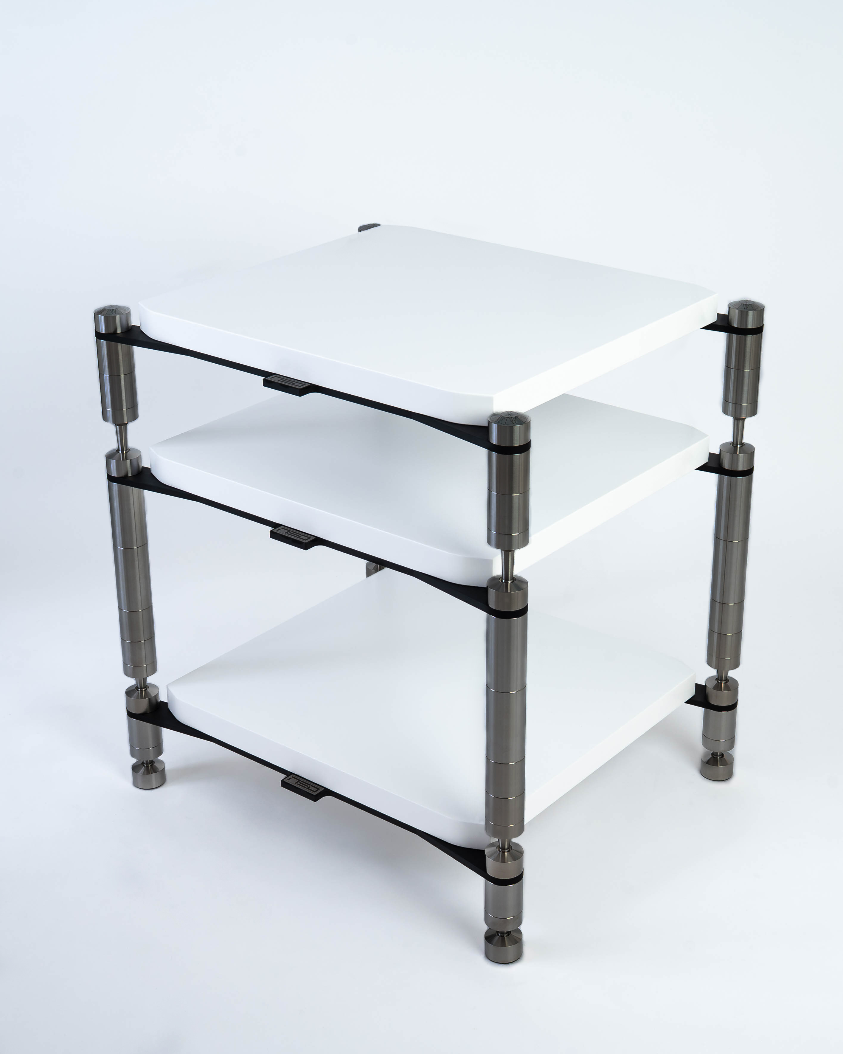 QUATTRON REFERENCE besteht aus einem unteren Regal, das mit vier speziellen höhenverstellbaren Regalbeinen ausgestattet ist, die für hohe Stabilität sorgen.