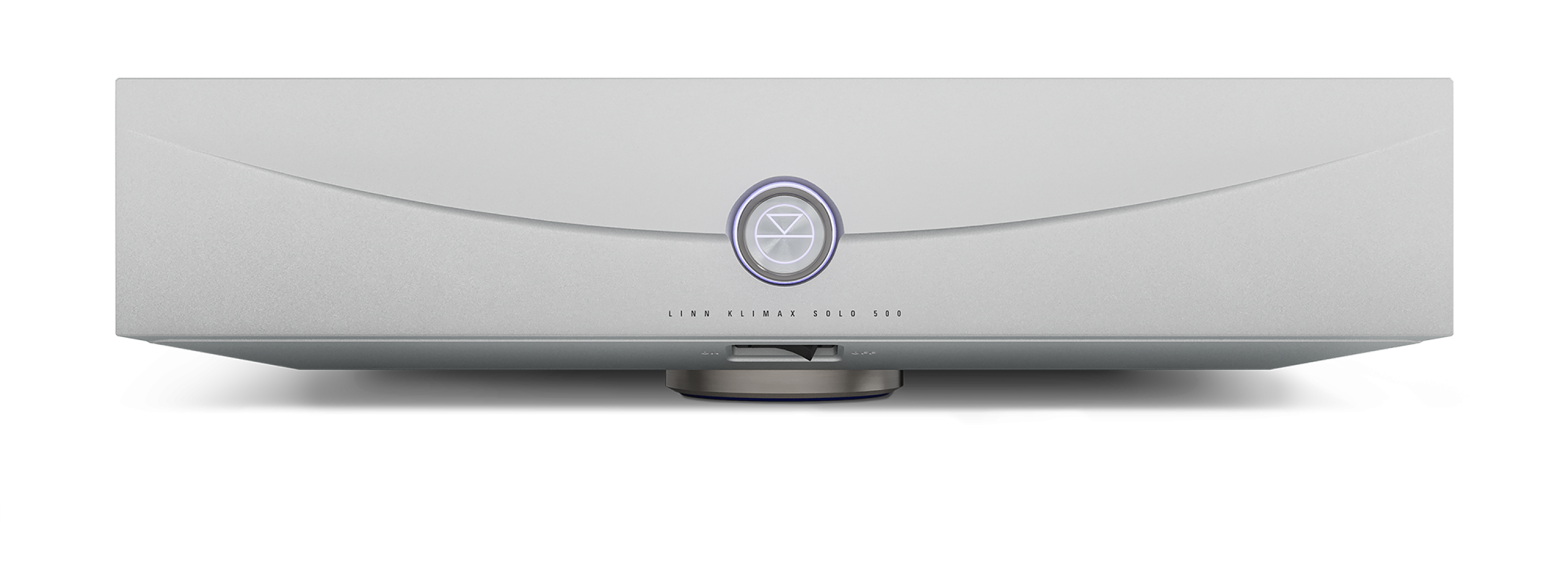 Ein variabler Hohlkehlschnitt im Aluminium führt zu einer abgeschrägten Kante und einem auffälligen Mittelstück: ein hinterleuchtetes Linn-Enblem in der Mitte eines Miniatur-Rondells, mit radial gerilltem Chromstreifen und einem Außenring aus Stahl. Das Enblem hat Tiefe und reflektiert das Licht dynamisch, wenn sie aus verschiedenen Positionen betrachtet wird. Jeder Verstärker im System reflektiert das Licht und erzeugt seine eigenen Schatten, was zur charakteristischen Ästhetik des Solo 500 beiträgt.