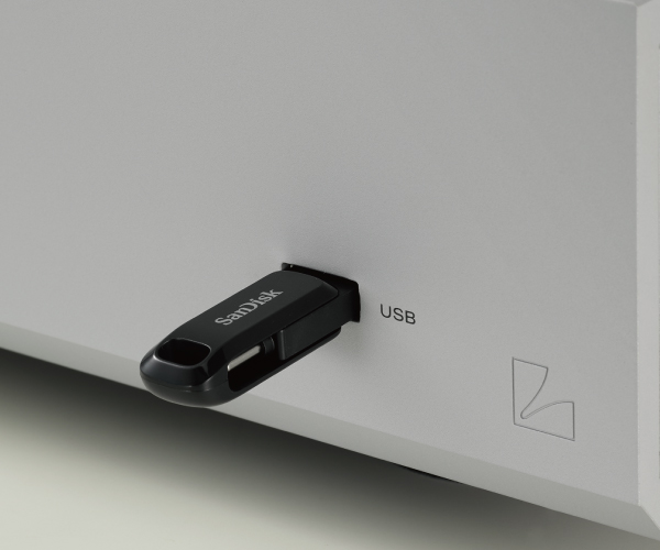 Der NT-07 ist mit dem OpenHome-Standard kompatibel und kann Daten von Klangquellen, die auf einem dedizierten Musikserver oder einem Network Attached Storage (NAS) gespeichert sind, in höchster Qualität wiedergeben. Wenn Sie sich für ein NAS mit Rauschunterdrückung und verbesserter linearer Stromversorgung entscheiden, wie z.B. das DELA von Melco Syncrets, das als Audiogerät entwickelt wurde, oder das fidata von I-O DATA Equipment, können Sie eine noch höhere Qualität und Komfort beim Zugriff auf hochauflösende Audiodaten erreichen. Darüber hinaus wurde der NT-07 mit USB-Anschlüssen auf der Vorder- und Rückseite ausgestattet (exklusive Nutzung der beiden Anschlüsse), die es Ihnen ermöglichen, USB-Geräte mit Audiodaten anzuschließen, ohne eine Netzwerkumgebung aufbauen zu müssen.