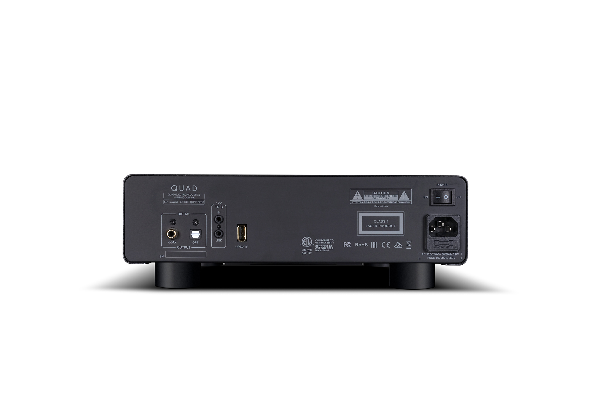 Das Ergebnis ist ein dedizierter CD-Transport, der sich vollständig auf das konzentriert, was für höchste Klangqualität entscheidend ist: eine präzise, stabile Auslesung der CD und die unverfälschte Weitergabe der digitalen Audiodaten an einen externen D/A-Wandler – ideal abgestimmt auf den QUAD 3.