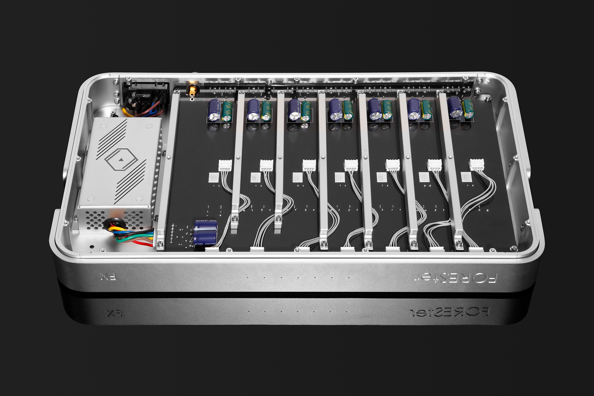 Die innere Schicht besteht aus verzinktem Stahl, die äußere aus einer stabilen, hochwertigen Aluminiumlegierung. Diese extravagante Konstruktion maximiert die Abschirmung und Kontrolle von Wirbelströmen und dämpft gleichzeitig Vibrationen und Geräusche. Im Vergleich zu geschweißten Blechgehäusen sorgt die erhabene Bauart des Gehäuses des Forester FX für eine verbesserte Resonanzdämpfung, eine bessere Isolierung elektromagnetischer Störungen und somit für makellose Audioqualität.