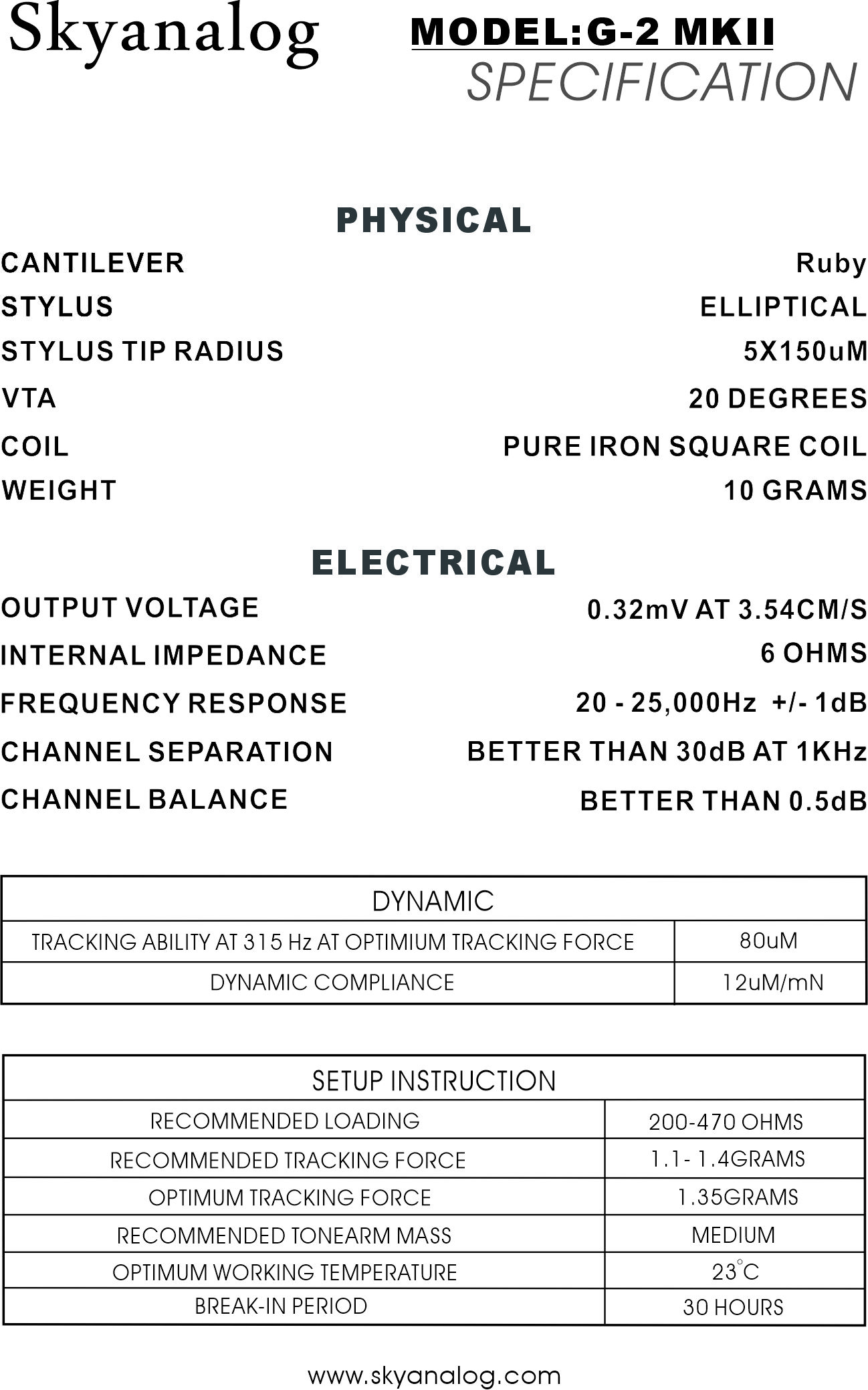 Das Skyanalog G2 MKII die Mittelklasse der G Serie von Skyanalog Tonabnehmer Da G2 MKII hat wie alle Modelle einen Fineline Nadelschliff, und einen Rubin als Nadelträger