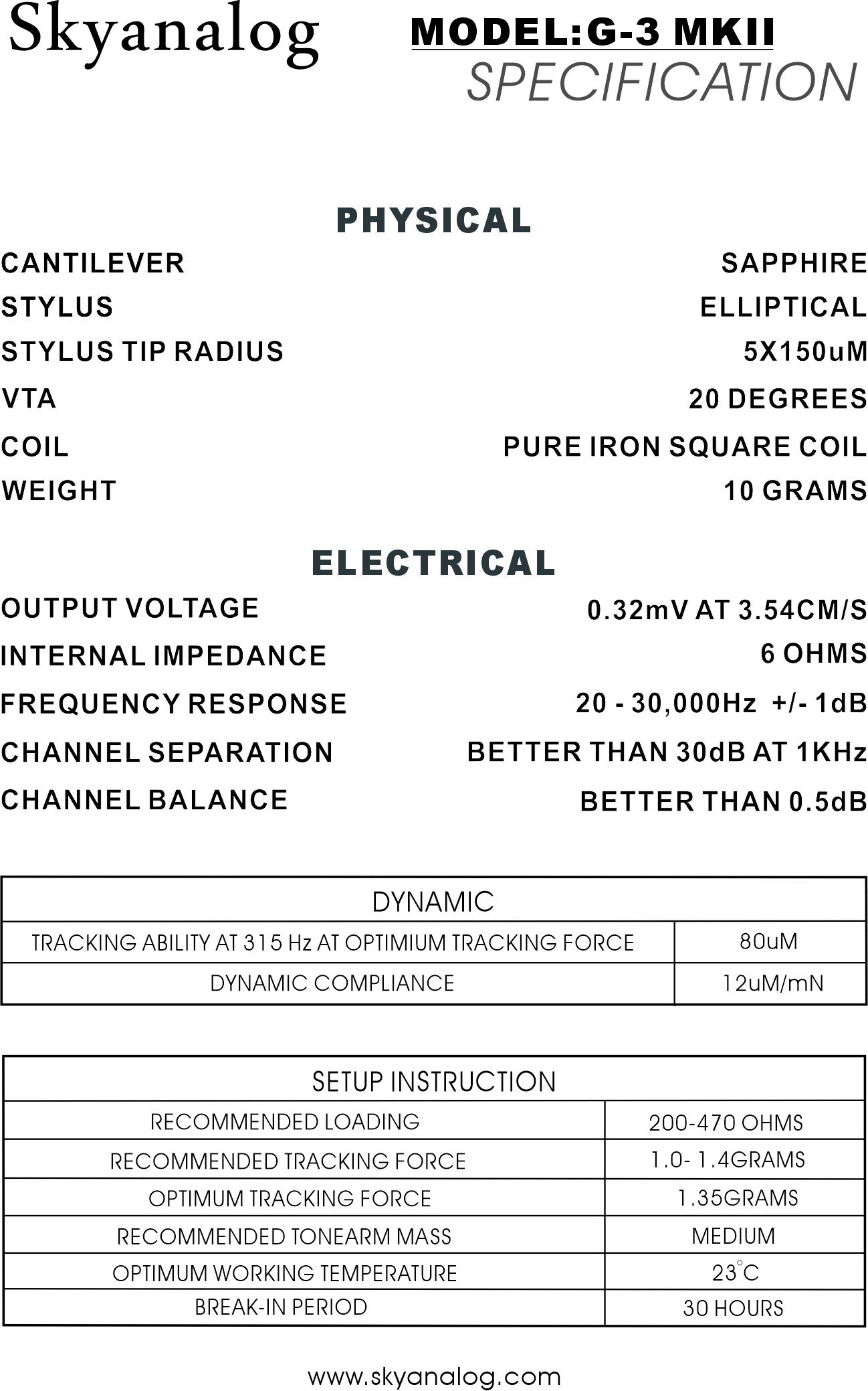 Das Skyanalog G3 MKII das High End Modell aus der G Serie von Skyanalog Tonabnehmer Das G3 MKII hat wie alle Modelle einen Fineline Nadelschliff, und einen Saphir als Nadelträger