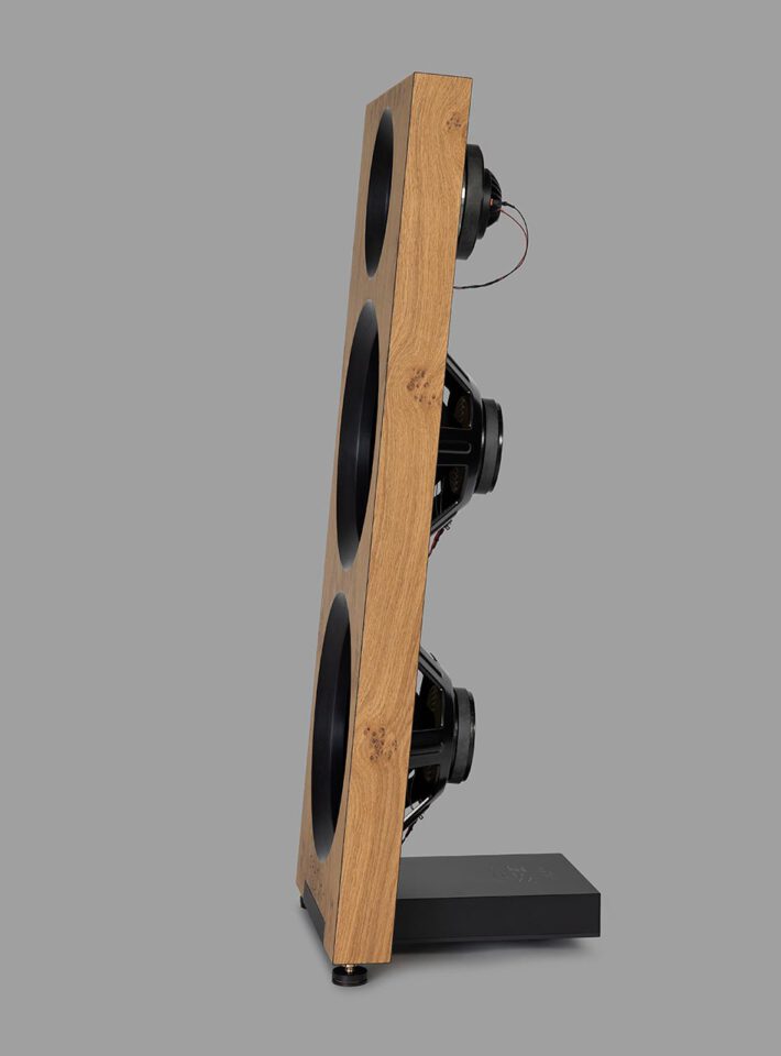 Durch die Verwendung des 8 Zoll Koaxiallautsprechers mit 1,75 Zoll Kugelwellenhorn, in Verbindung mit zwei 15 Zoll Bässen ist unsere neue Nº 3 unser größter Open Baffle Lautsprecher.