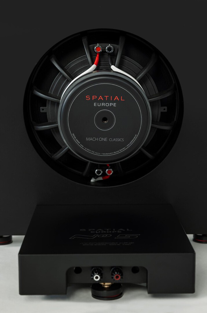 Durch die Verwendung der zwei 12 Zoll Doppelschwingspulenbass mit Faraday Buchse aus Kupfer im Magnet um die Schwingspule wird jeglicher Saugkreis überflüssig. Das Ergebnis ist eine deutliche Wirkungsgraderhöhung und ein superber Mitteltonbereich. In Kombination mit unserer neu optimierten Seriellen 3-Wege Weiche ist die Nº5 in punkto Dynamik, Bühnenabbildung und Klangfarbe ein neuer Meilenstein in der Spatial Europe Entwicklung. Extreme Finesse: Durch den Einsatz unseres neuen 10 Zoll Koaxialsystems mit 1,75“ Kugelwellendipolhorn in Verbindung mit unserer neu optimierten Seriellen 3 Wege Weiche ist der Betrieb auch an Verstärkern ab 8 Watt möglich! (Push/Pull oder Single Ended)