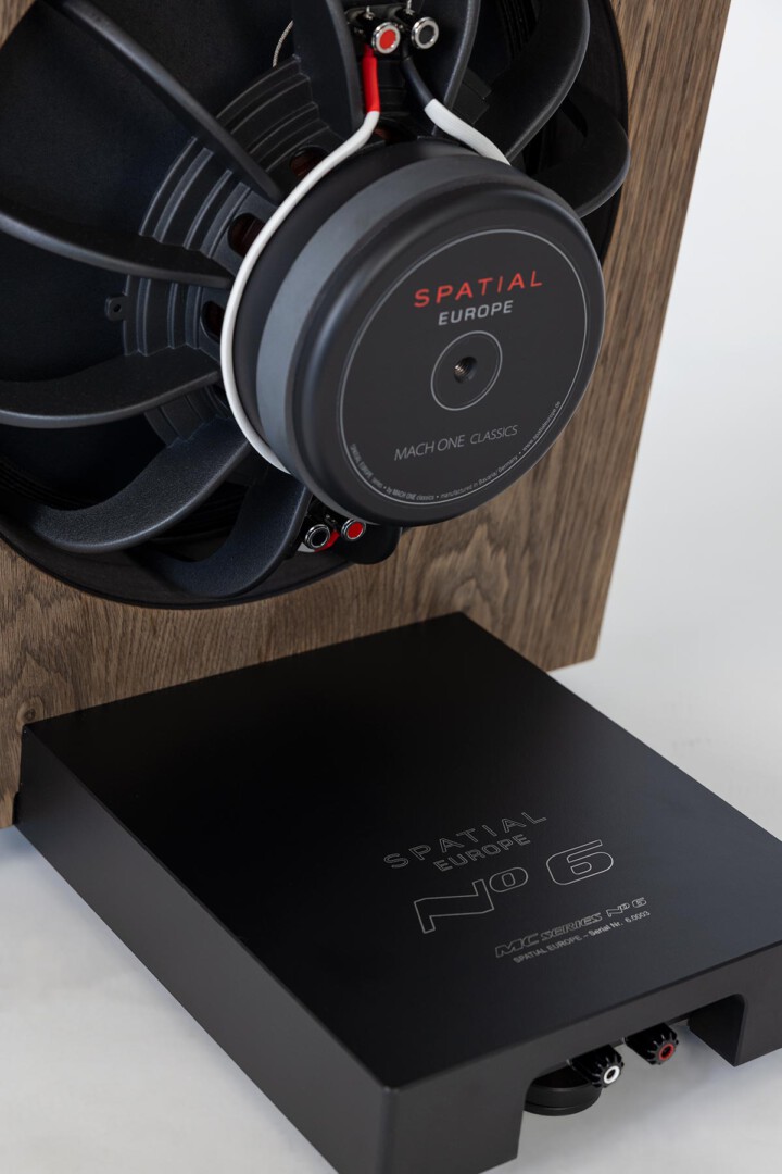 Durch die Verwendung des 15 Zoll Acoustic Elegance Doppelschwingspulenbass mit Faraday Buchse aus Kupfer im Magnet um die Schwingspule und dem 10 Zoll Mittelton mit extrem leichter Pappmembrane und Gewebesicke wird jeglicher Saugkreis überflüssig. Das Ergebnis ist eine deutliche Wirkungsgraderhöhung und ein superber Bass-Mitteltonbereich. In Kombination mit unserer neu optimierten Seriellen Weiche ist die Nº 6 in punkto Dynamik, Bühnenabbildung und Klangfarbe ein neuer Meilenstein in der Spatial Europe Entwicklung.