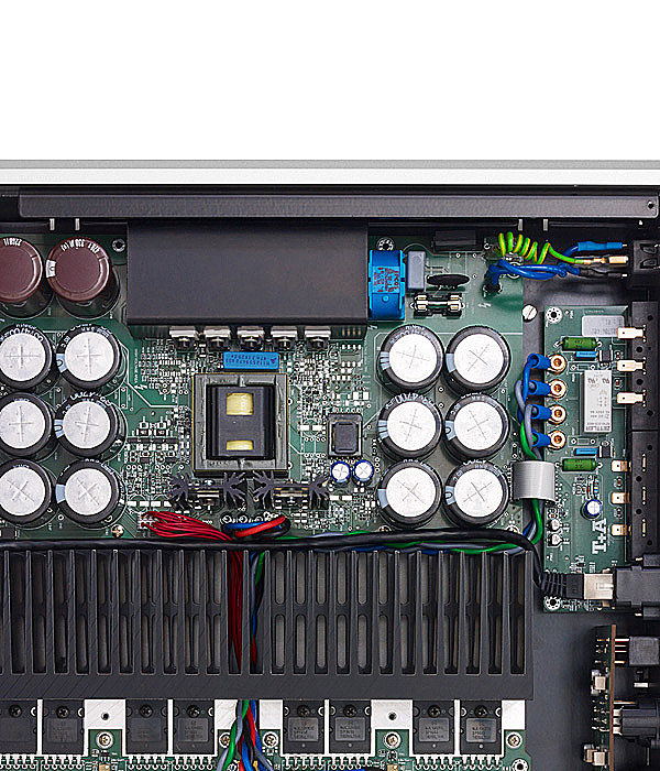 Die Qualität einer Endstufe wird neben der Schaltungstopologie ganz entscheidend vom Netzteil bestimmt. Netzteile müssen so stabil und hart wie möglich sein, damit die Versorgungsspannung auch bei größten Impulsen nicht zusammenbricht. Dies erfordert in der Regel sehr große Transformatoren. Angesichts des begrenzten Platzes in den R-Geräten haben unsere Ingenieure eine geniale Alternativlösung entwickelt: ein geregeltes Hochfrequenz-Sinus-Netzteil mit groß dimensionierter Siebung, welches ohne Probleme bis zu 1200 Watt liefert. Das Netzteil kann deshalb trägheitslos auch bei steilflankigen Impulsen große Strommengen in kürzester Zeit zur Verfügung stellen. Im PA 2500 R werden gleich zwei dieser Netzteile eingesetzt. Unsere 30-jährige Erfahrung im Verstärkerbau hat uns gezeigt, wie wichtig die Qualität audiophiler Bausteine für das Klangergebnis ist. Deshalb werden die von uns verwendeten Bauteile sorgfältig ausgesucht und streng selektiert, um für den jeweiligen Einsatzzweck optimale Eigenschaften sicherzustellen.