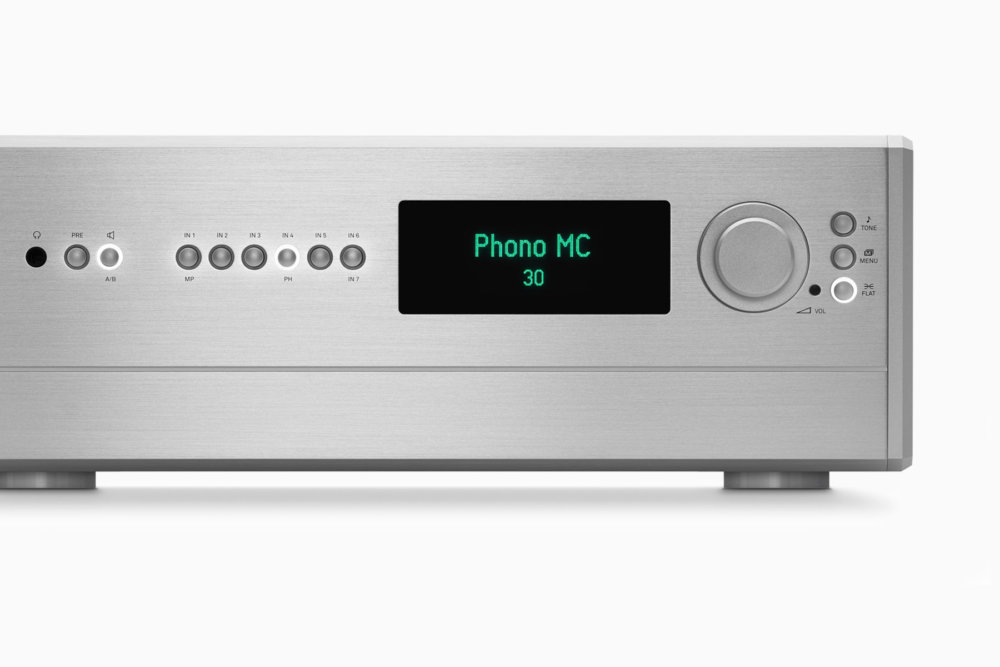 Wir verwenden verlustarme Glimmerkondensatoren mit Silberelektroden, induktionsfreie Widerstände, rauscharme Audio-Präzisionswiderstände, speziell für T+A hergestellte nickelfrei vergoldete oder rhodinierte Anschlussklemmen. Ein Großteil dieser Bauelemente wurde für den militärischen Einsatz entwickelt und erfüllt dementsprechend hohe Anforderungen an Qualität und Langlebigkeit. Für den Datenaustausch der Geräte untereinander wurde für die R-Serie ein völlig neuer, sehr schneller Datenbus entwickelt. Er ermöglicht es, die gesamte Anlage mit einer Systemfernbedienung zu steuern. Ebenso kann die Bedienung mit der T+A App für iOS oder Android erfolgen, wenn der MP 2000 R Bestandteil der Anlage ist. Die Verstärker sind mit einer perfekten Schutzschaltung ausgerüstet, die nicht im Signalweg liegt. So kann es zu keinerlei Klangbeeinträchtigungen kommen. Die Schutzschaltung vergleicht das Eingangssignal vor der Endstufe mit dem Ausgangssignal und schaltet bei geringsten Abweichungen (Clipping, Klirr etc.) die Ausgangsrelais blitzschnell ab. Bei Überhitzung oder Kurzschluss an den Ausgängen greift sie ebenfalls ein. Die gesamte Steuerelektronik ist in das massive Frontprofil aus Aluminium eingelassen, wo sie optimal abgeschirmt wird. Auf der Vorderseite befinden sich das leuchtstarke und dimmbare Display (VFD) und die unterschiedlich beleuchtbaren Bedienknöpfe.
