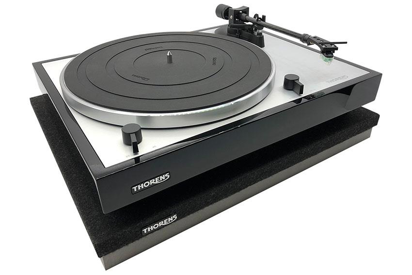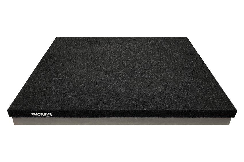Dreilagige Absorberplattform in Sandwichbauweise zur hocheffektiven Entkopplung des Plattenspielers vom Untergrund.