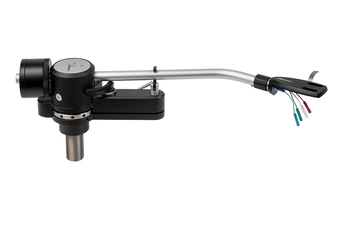 Der Thorens TP 160 - Spitzen-Tonarm mit Schneidlager - ist ein Neunzoll-Radialarm der mittelschweren Gewichtsklasse. Seine günstige Masseverteilung und hohe Festigkeit machen ihn zum idealen Träger für feinste Tonabnehmer. Diese finden im serienmäßigen Original-Headshell Platz, das zusammen mit dem Arm neu designt wurde. Alternativ nimmt der TP 160 auch jedes andere Headshell mit SME-Bajonett oder integrierte Tondosen wie das Ortofon SPU auf. Da die effektiven Längen verschiedener Tondosen etwas variieren können, haben wir auch eine axiale Verstellung des Armrohrs vorgesehen, um stets einen perfekten Überhang zu gewährleisten.