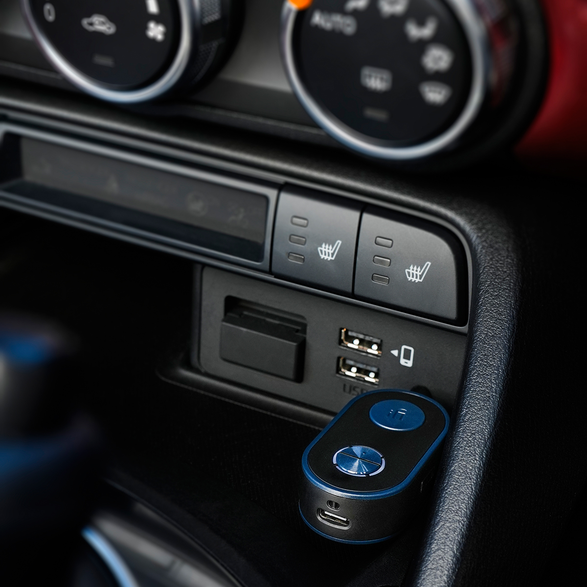 Entwickelt, um ein Gewirr aus Adaptern und Kabeln zu ersetzen, ist es der einzige Bluetooth-Transceiver, der nach Executive-Class-Standards gebaut wurde – und liefert hochauflösendes drahtloses Audio, das andere in der Economy-Klasse weit hinter sich lässt. Durch die nahtlose Verbindung mit Autos, Bord-Audiosystemen und vielem mehr verwandelt es Ihre mühsame Reiseroutine in eine unvergessliche Reise.